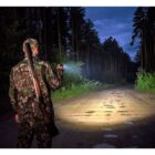 Latarka generuje strumień światła o mocy do 2200 lumenów, oferując szeroką plamę centralną z mocnym doświetleniem bocznym. Taka charakterystyka sprawdza się w terenie otwartym oraz podczas pracy na dystansie 50–70 m, przy maksymalnym zasięgu do 288 m.